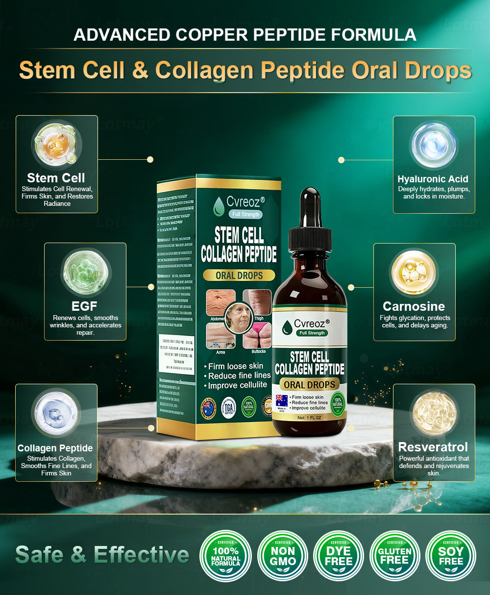 ✅ Scientific formula: Cvreoz® 𝐒𝐭𝐞𝐦 𝐂𝐞𝐥𝐥 & 𝐂𝐨𝐥𝐥𝐚𝐠𝐞𝐧 𝐏𝐞𝐩𝐭𝐢𝐝𝐞 𝐎𝐫𝐚𝐥 𝐃𝐫𝐨𝐩𝐬 is a scientifically developed product designed to stimulate the production of collagen and elastin, repair damaged skin and restore a firm and lifted appearance - achieving deep repair without injections or surgeries, thereby enhancing the skin's firmness and luster.